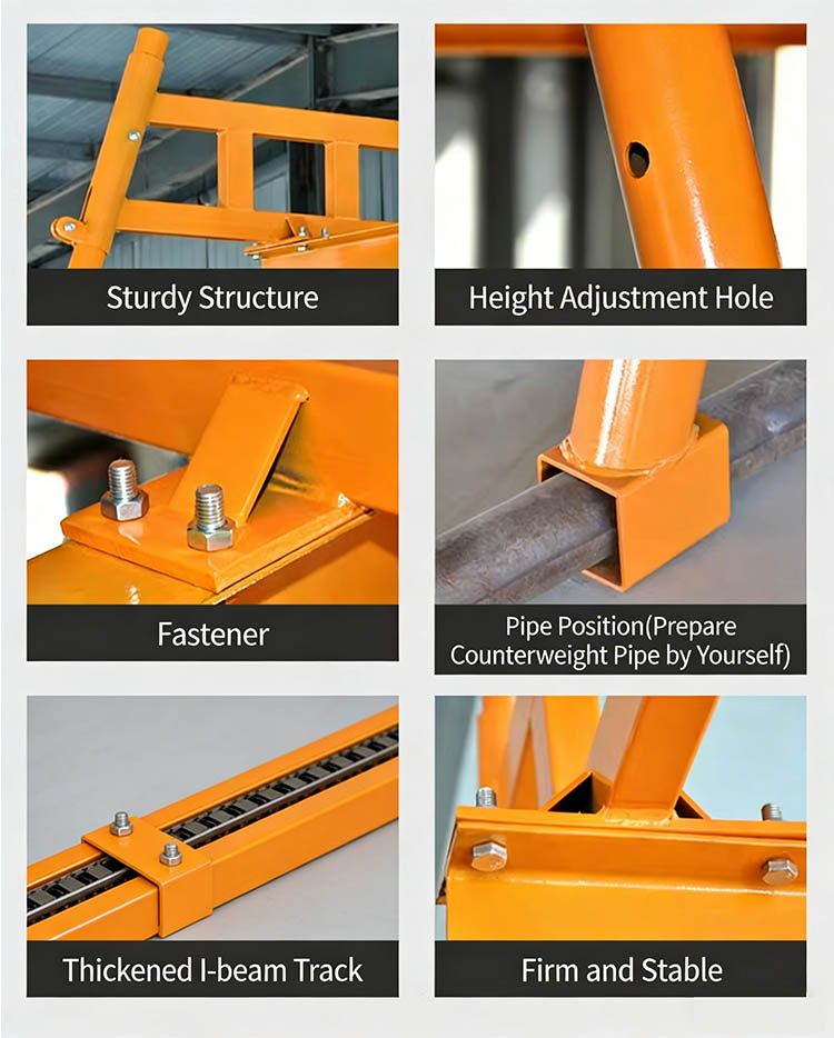 Contragewicht installatie:Voeg contragewichtbuizen toe (door de gebruiker geleverd) bij de buispenetratiepunten op de kolommen om de stabiliteit van het zwaartepunt van de apparatuur te garanderen en kantelen te voorkomen.
