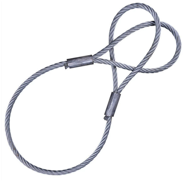Druk de twee uiteinden van een staaldraadkabel samen met hulzen om een ​​doorlopende lus te vormen. Dit is het meest gebruikte type met extreem brede toepassingen.